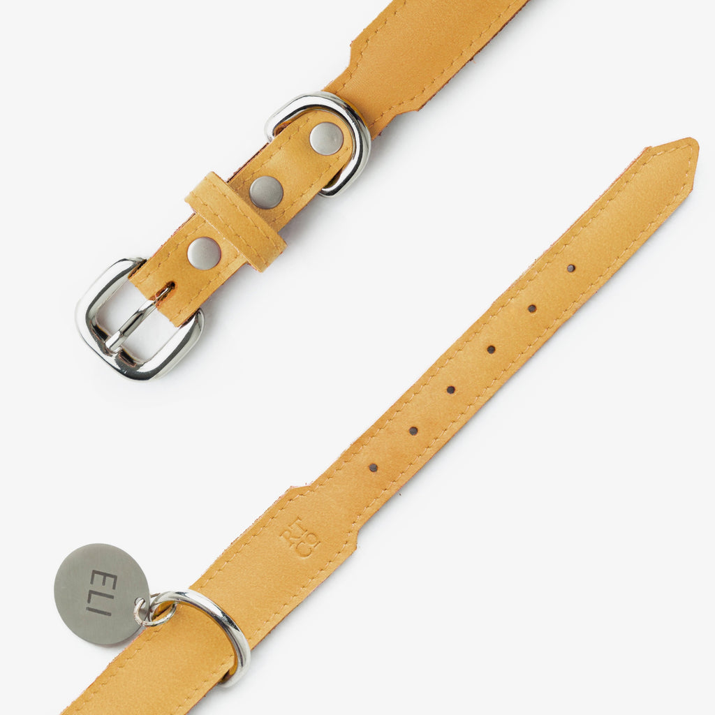 Made with 100% full grain Napa leather and non-rusting hardware, these collars are meant to age with grace and last with time.